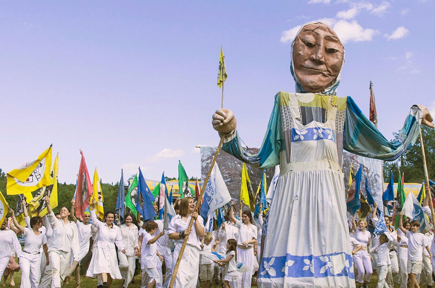 Bread & Puppet was another inspirational fixture of Vermont life. We attended their ‘Domestic Resurrection Circus’ weekends almost every summer of my childhood. This was a unique event drawing thousands (& later hundreds of thousands) of people into tiny Glover, Vermont to partake of all kinds of music, performances, arts & crafts, political theater, speakers, free German sourdough bread & garlic aioli baked by volunteers and given away all weekend, & of course, the main event, the Domestic Resurrection Circus which contained giant puppets, music, political comedy & satire commenting on issues of the day, and a ritual where they burned a giant man at the end of the show (precursor to the giant Burning Man Festival of today)