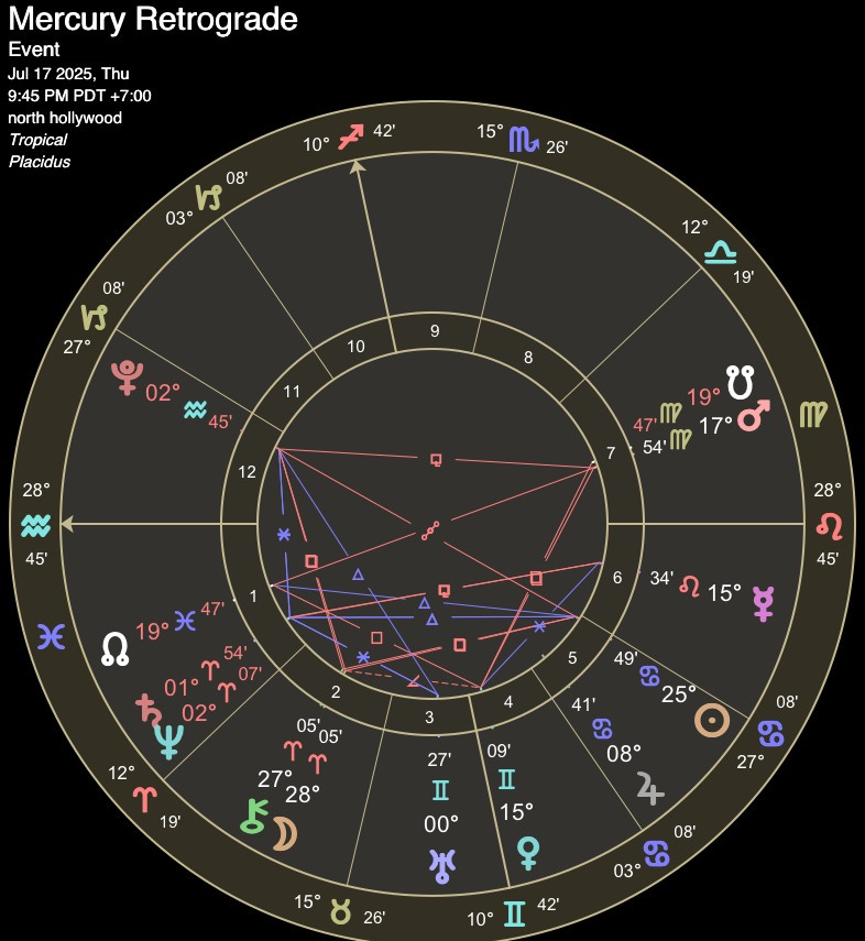 Late tonight PDT, at 9:45 pm (12:45 am EST), Mercury moves into retrograde to join a host of other planets that have already retrograded, including Pluto, Neptune, Saturn, along with Chiron, the asteroid symbolizing the wounded healer.